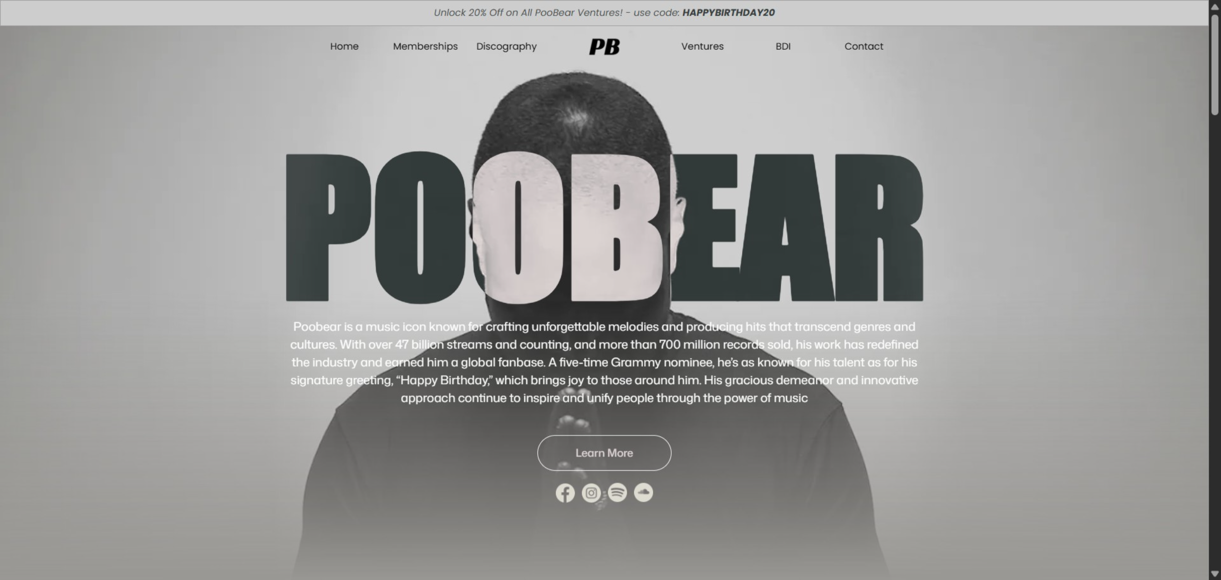 Poobear is a music icon known for shaping global hits and collaborating with top artists worldwide. I designed the home experience for his official website, focusing on a clean and immersive layout that reflects his artistry and global influence.
