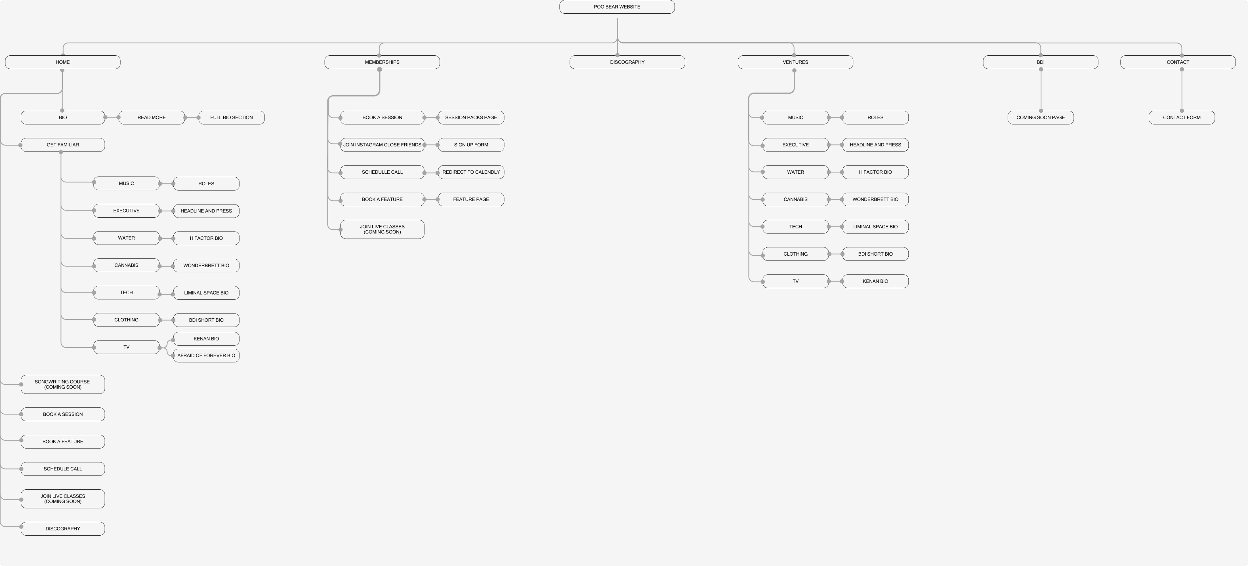Poo Bear’s website redesign aimed to modernize the digital presence of one of the most influential figures in contemporary music. The goal was to improve navigation, hierarchy, and overall usability while preserving the artist’s personality and brand identity. The previous site felt fragmented and overloaded; through a refined sitemap and simplified structure, the experience became more coherent and immersive.